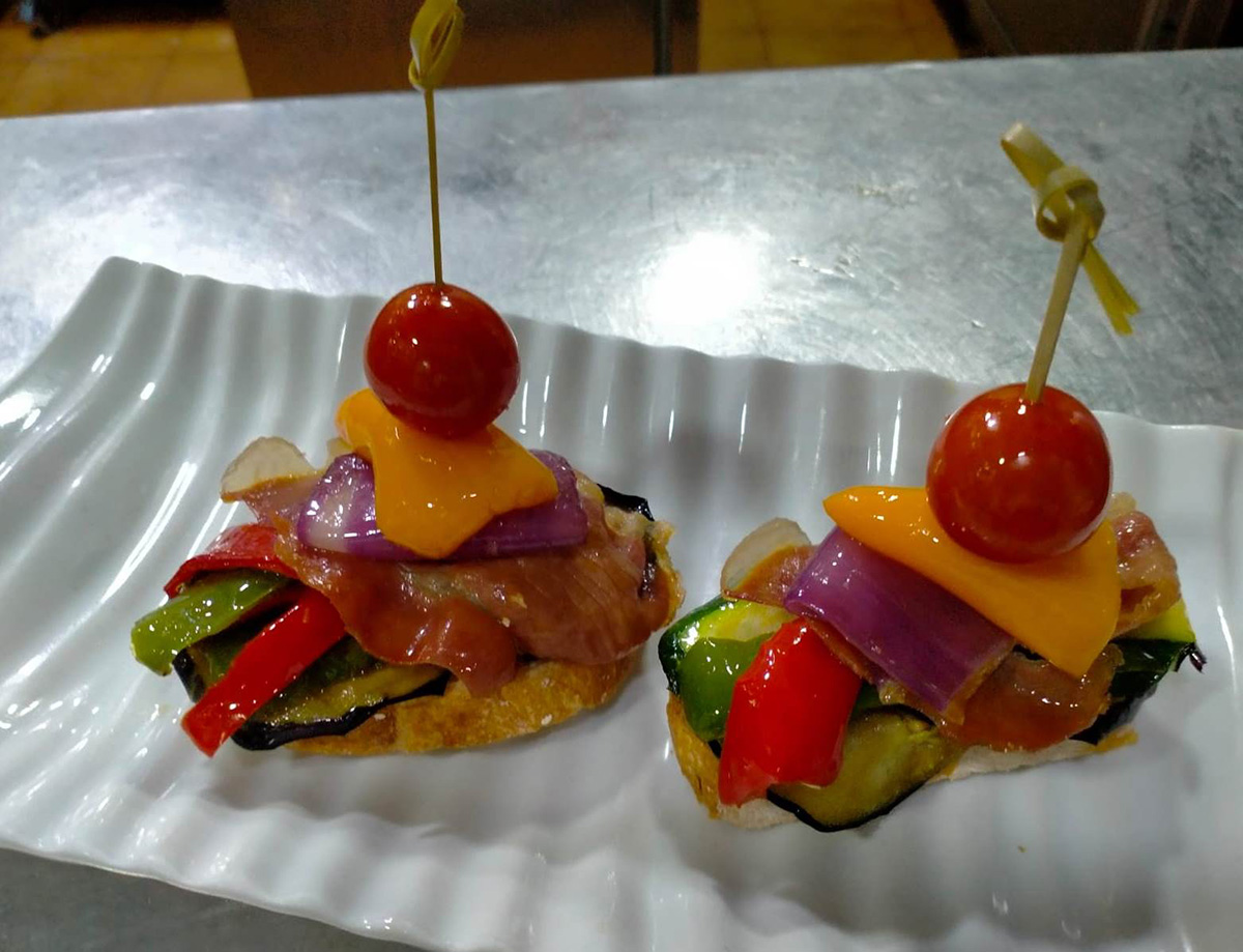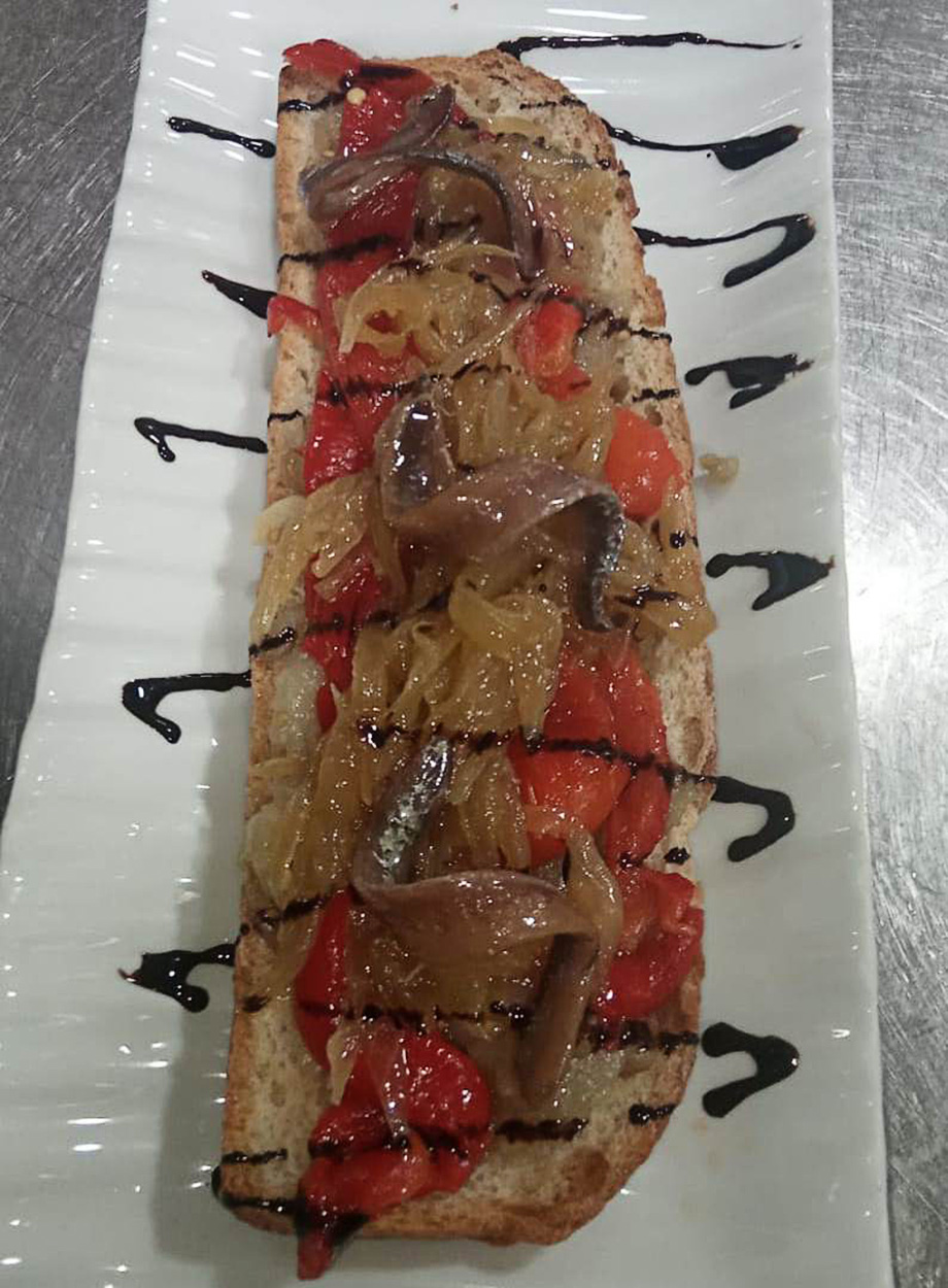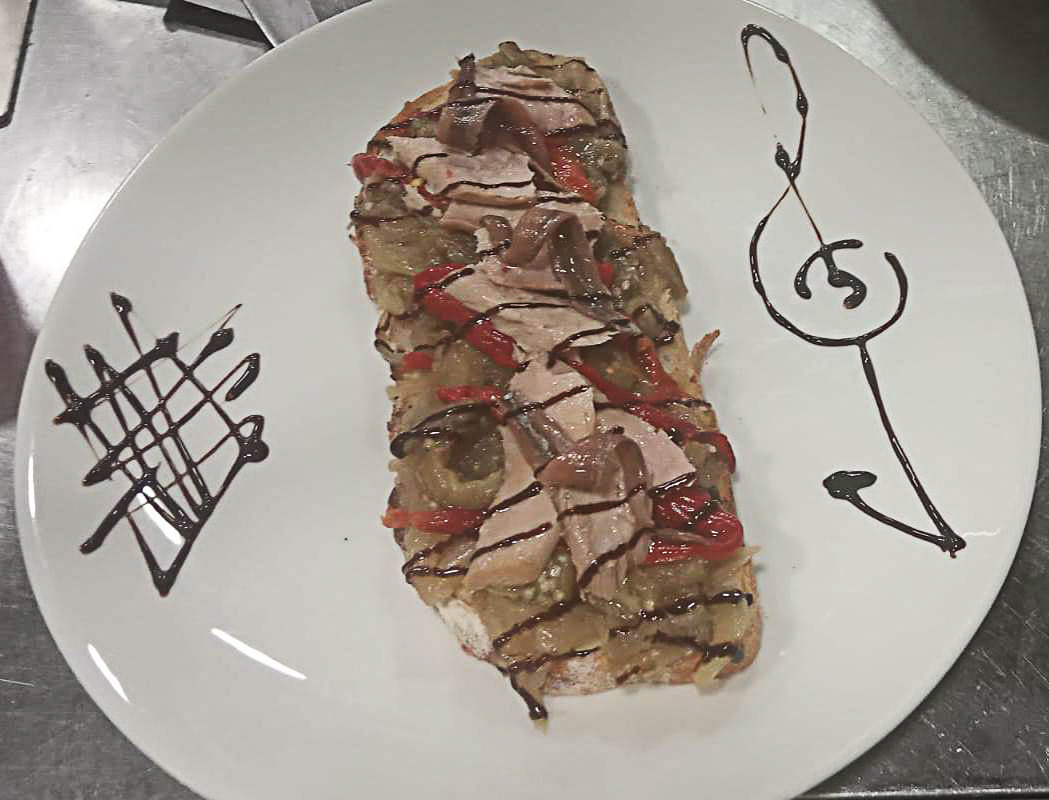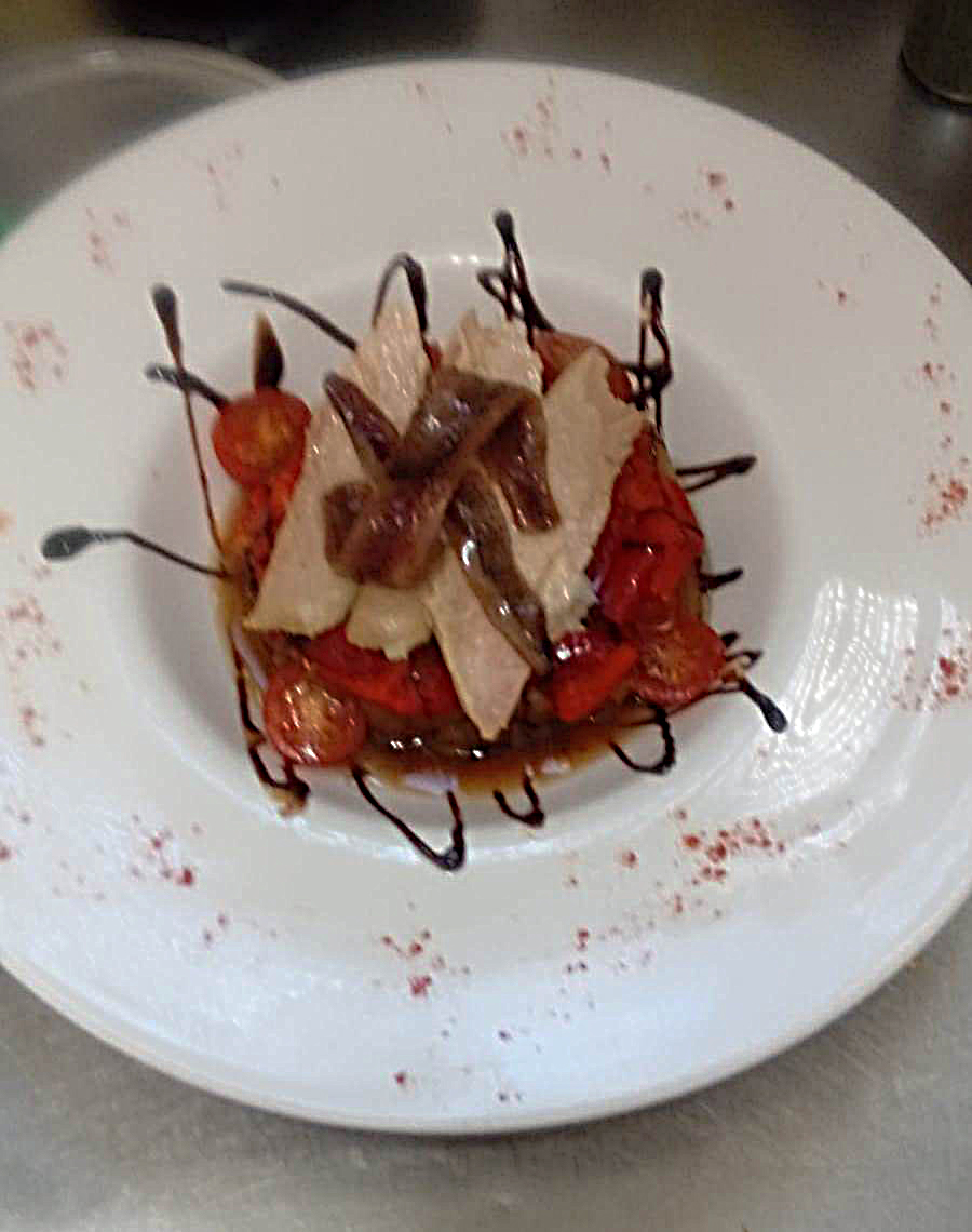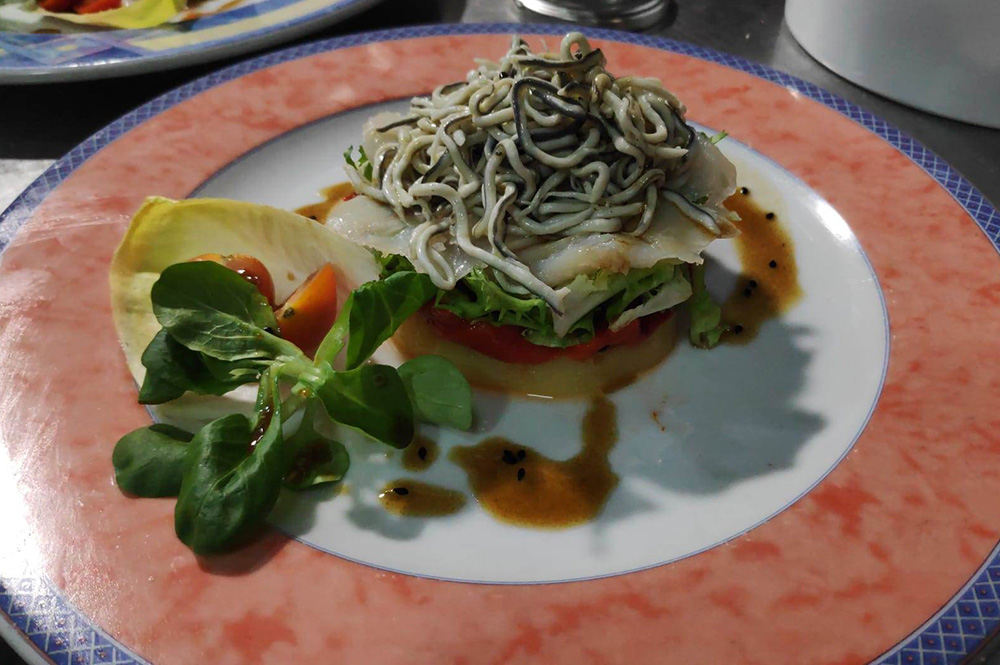 Timbal de Pimientos Asados, Bacalao y Gulas