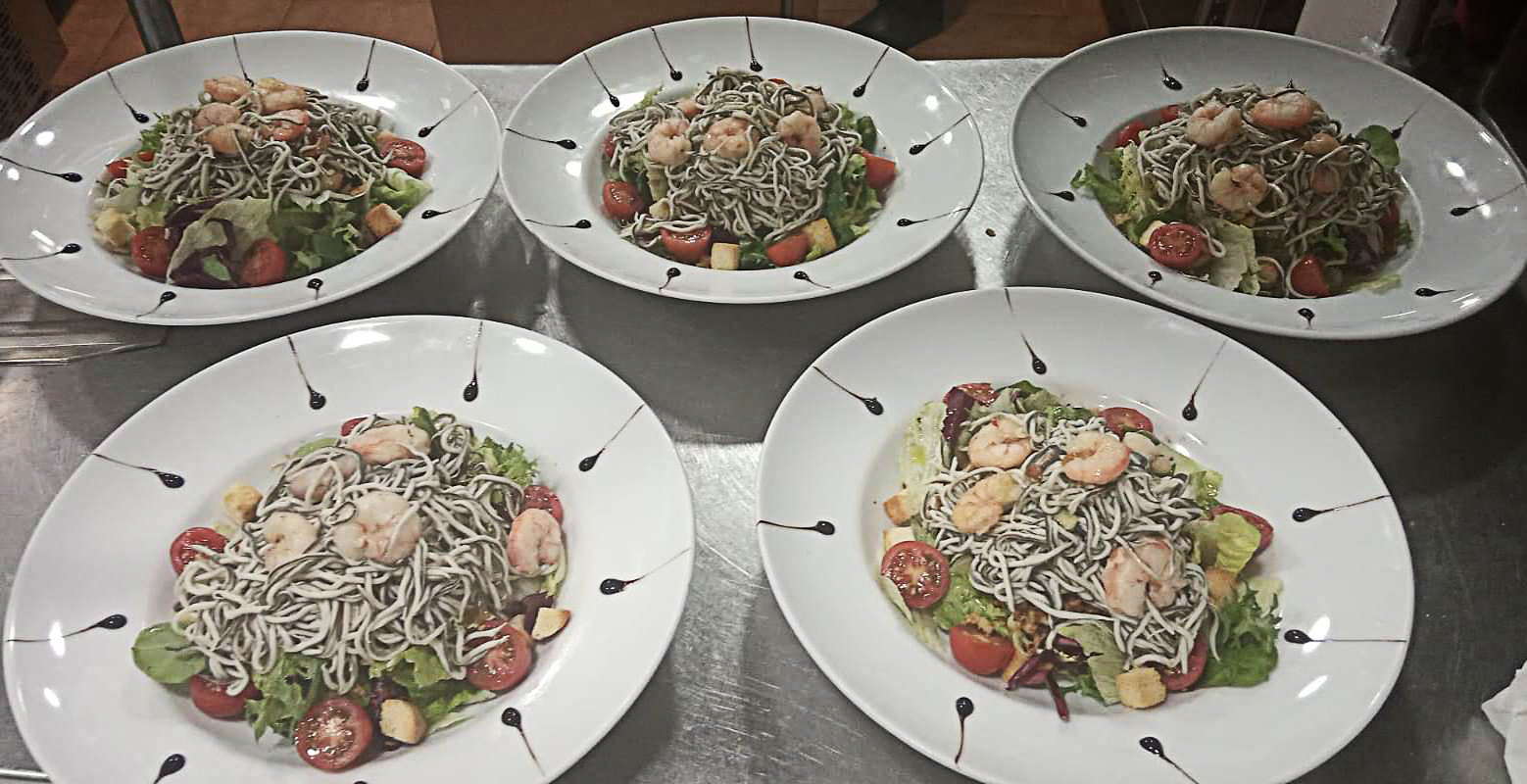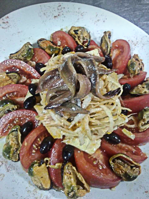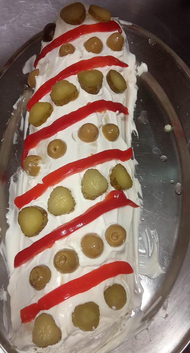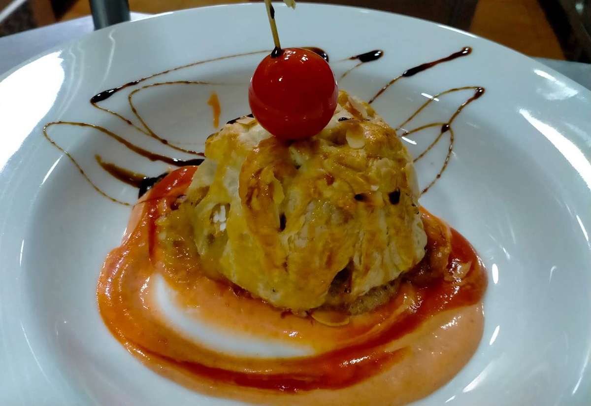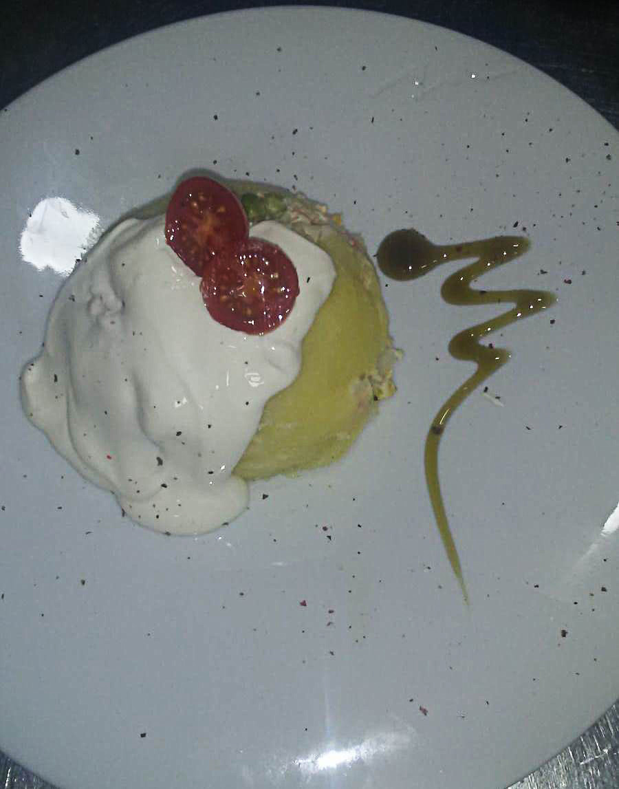 Timbal de Pimientos Asados, Bacalao y Gulas