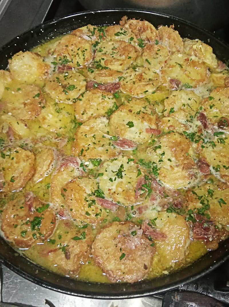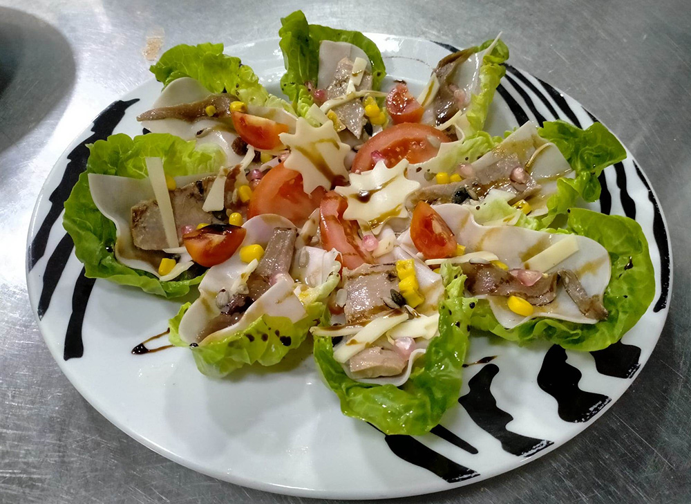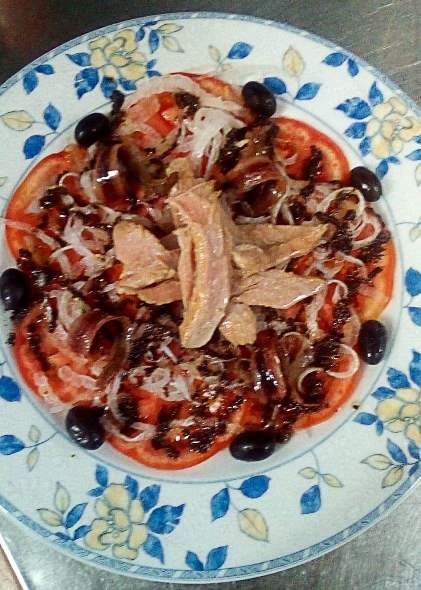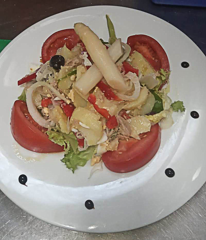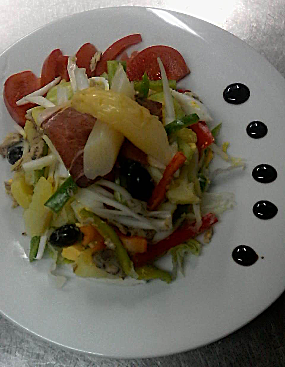 Timbal de Pimientos Asados, Bacalao y Gulas