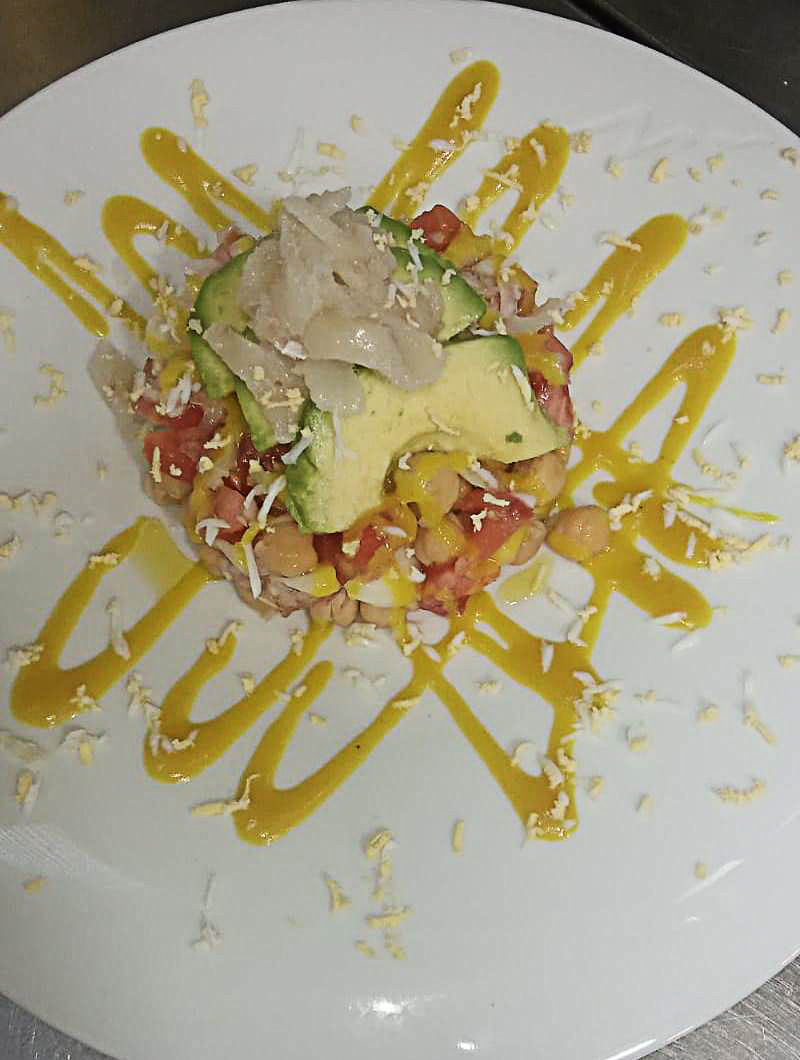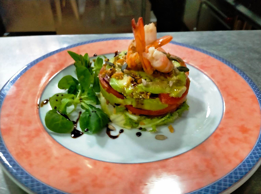 Timbal de Aguacate, Langostinos y Frutos Secos